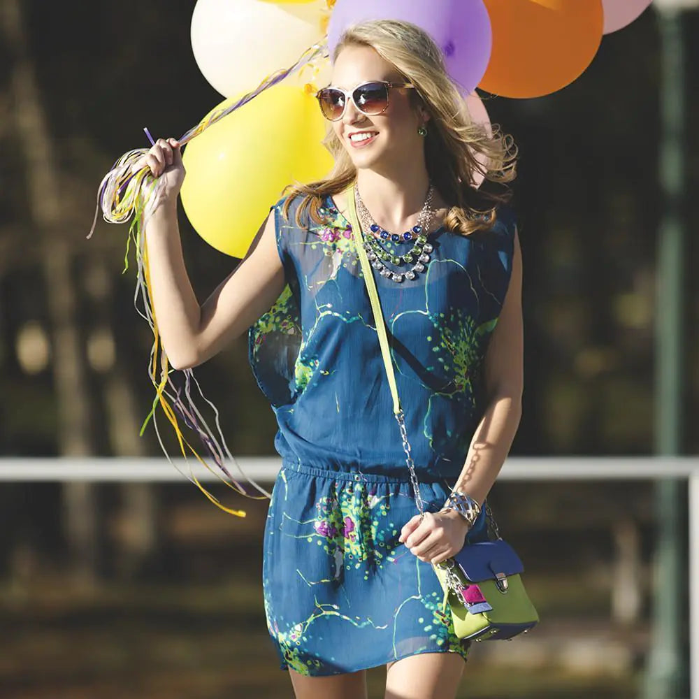 Tiny Leather Handbag -Blue/Lime (Option 2)